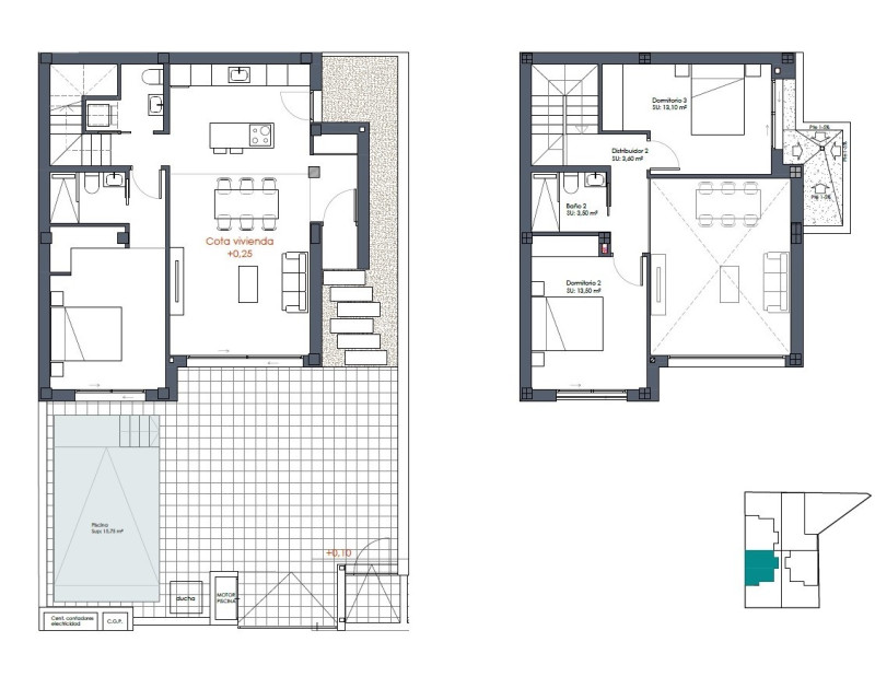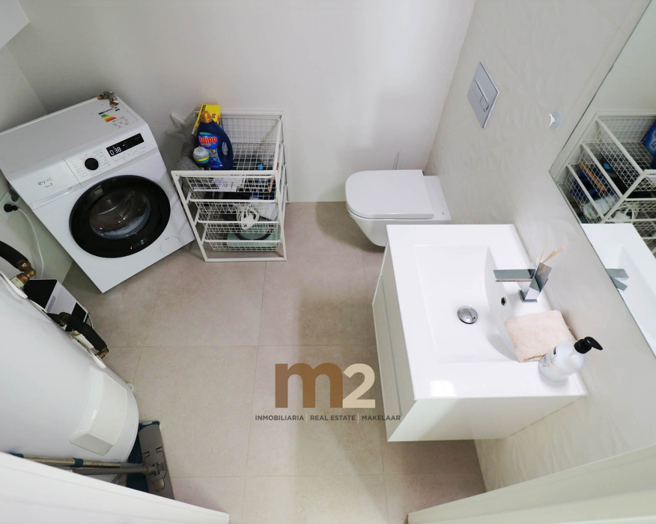 Op de begane grond bevindt zich een ruime en zonnige woon-eetkamer, een volledig uitgeruste keuken, een slaapkamer met en-suite badkamer en een praktische bijkeuken. Buiten is er een groot terras met privézwembad en parkeerruimte op eigen perceel.