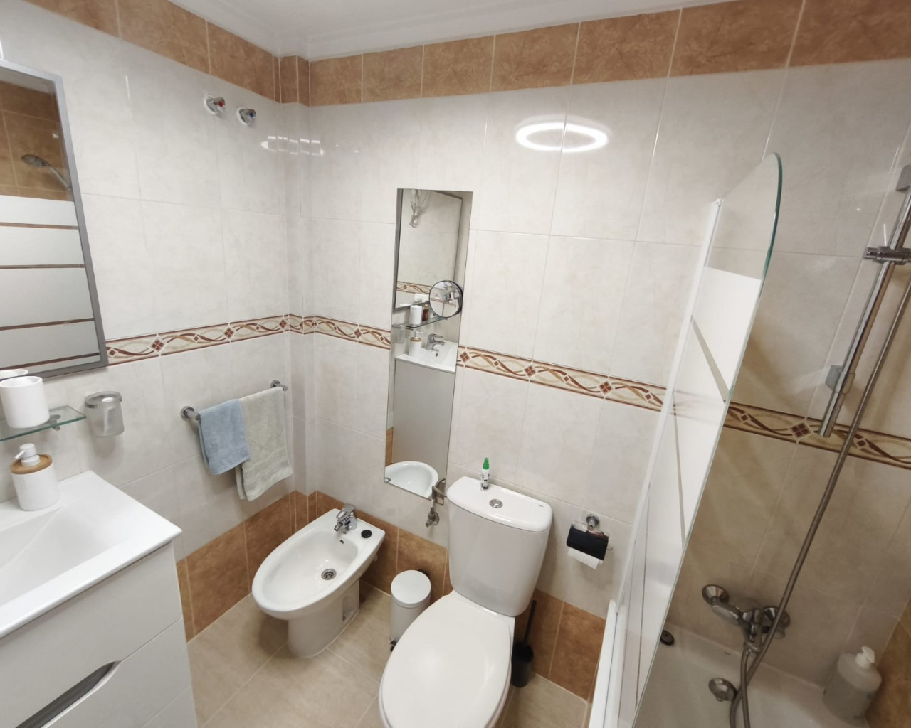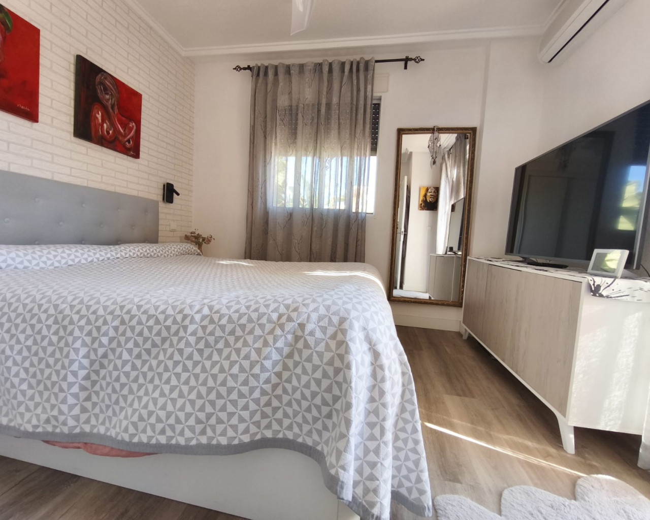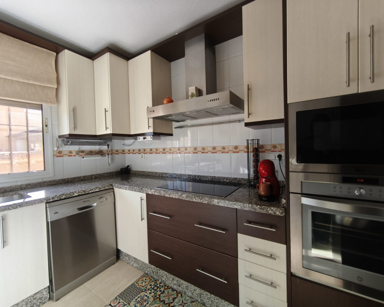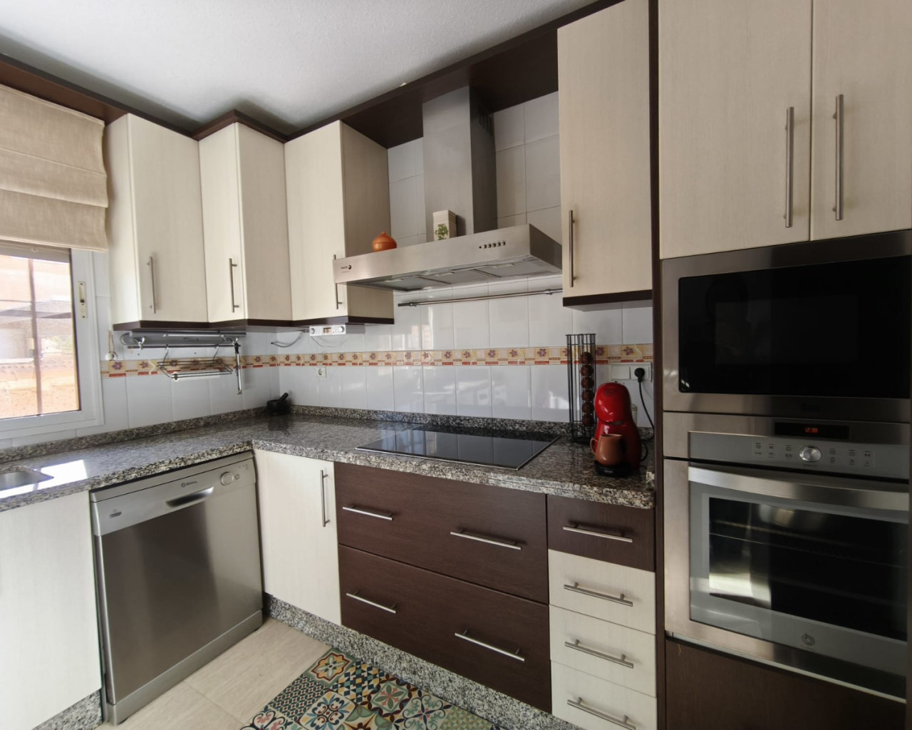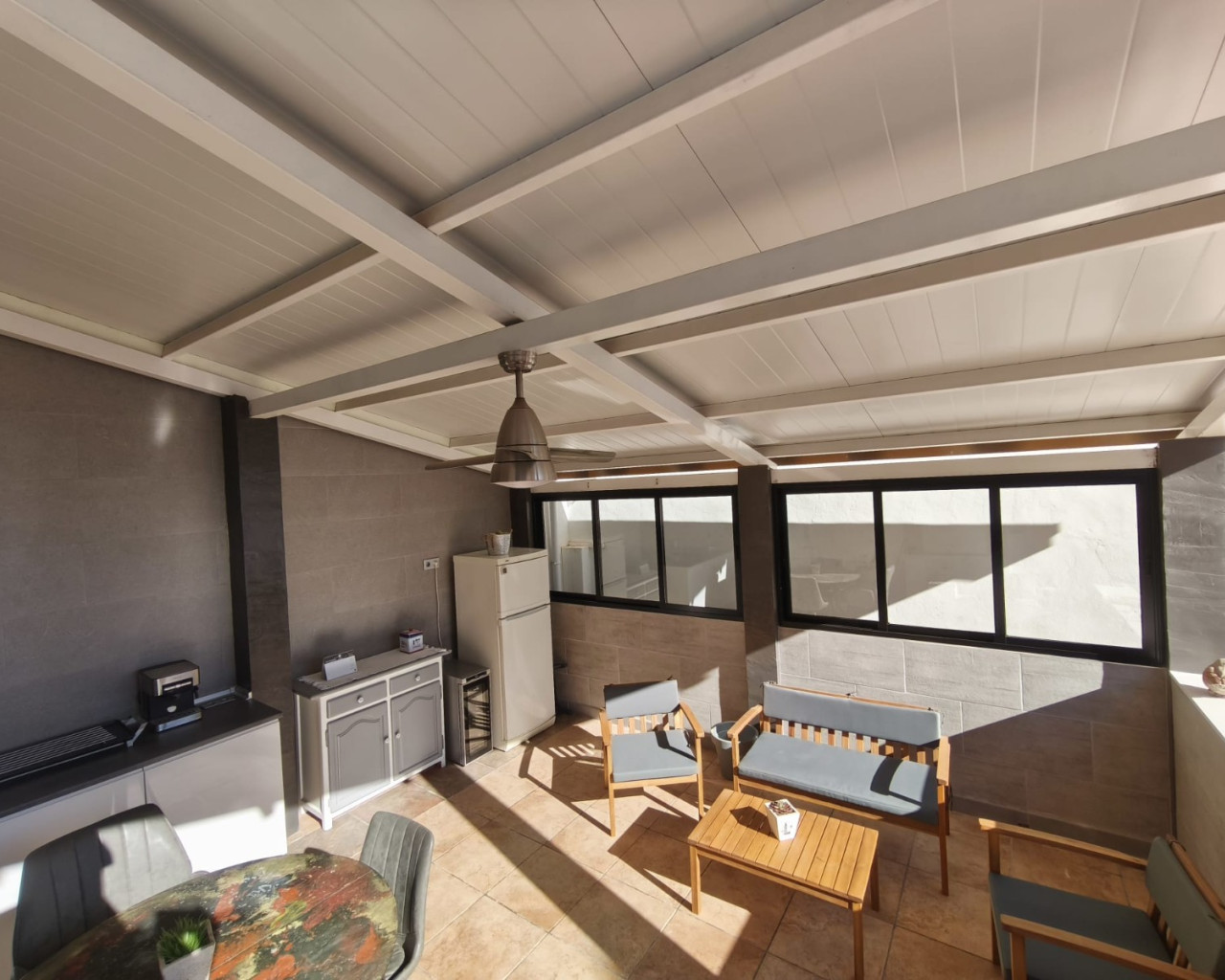 De aparte keuken is volledig gerenoveerd en gemeubileerd, met een moderne uitstraling en hoge gebruiksvriendelijkheid. Op de bovenste verdieping beschikt de woning over een privé solarium, perfect om te ontspannen, te zonnen of te genieten van het buitenleven in alle rust.