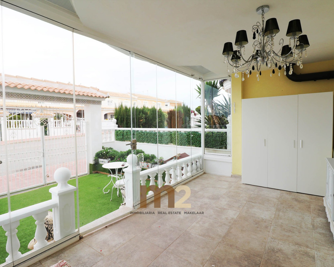 Preciosa vivienda con una cuidada decoración romántica, situada en una zona céntrica de la Urbanización Monte Azul. En la planta baja dispone de una amplia terraza distribuida en dos alturas, una de ellas acristalada, ideal para disfrutar durante todo el año. Cuenta con un amplio salón-comedor, cocina independiente, baño con ducha y patio trasero con acceso directo a las zonas comunes.