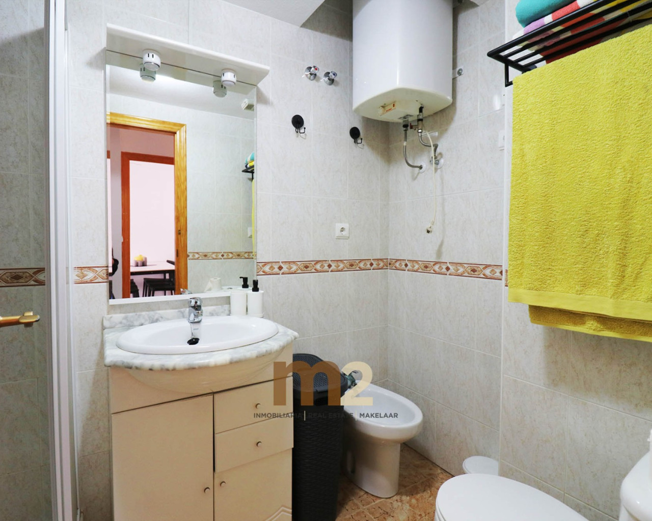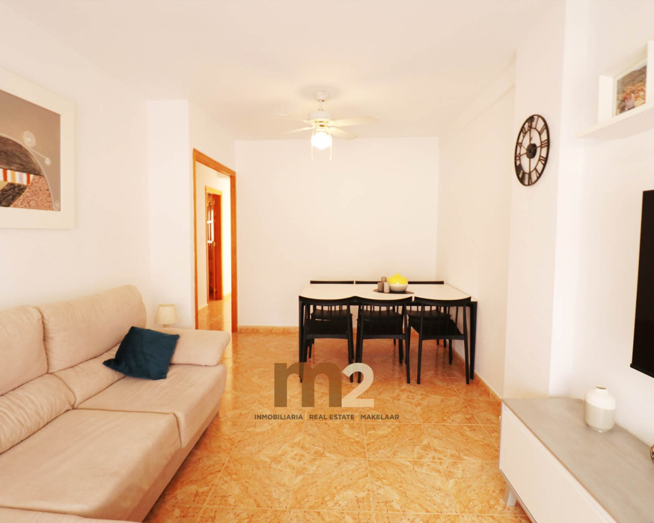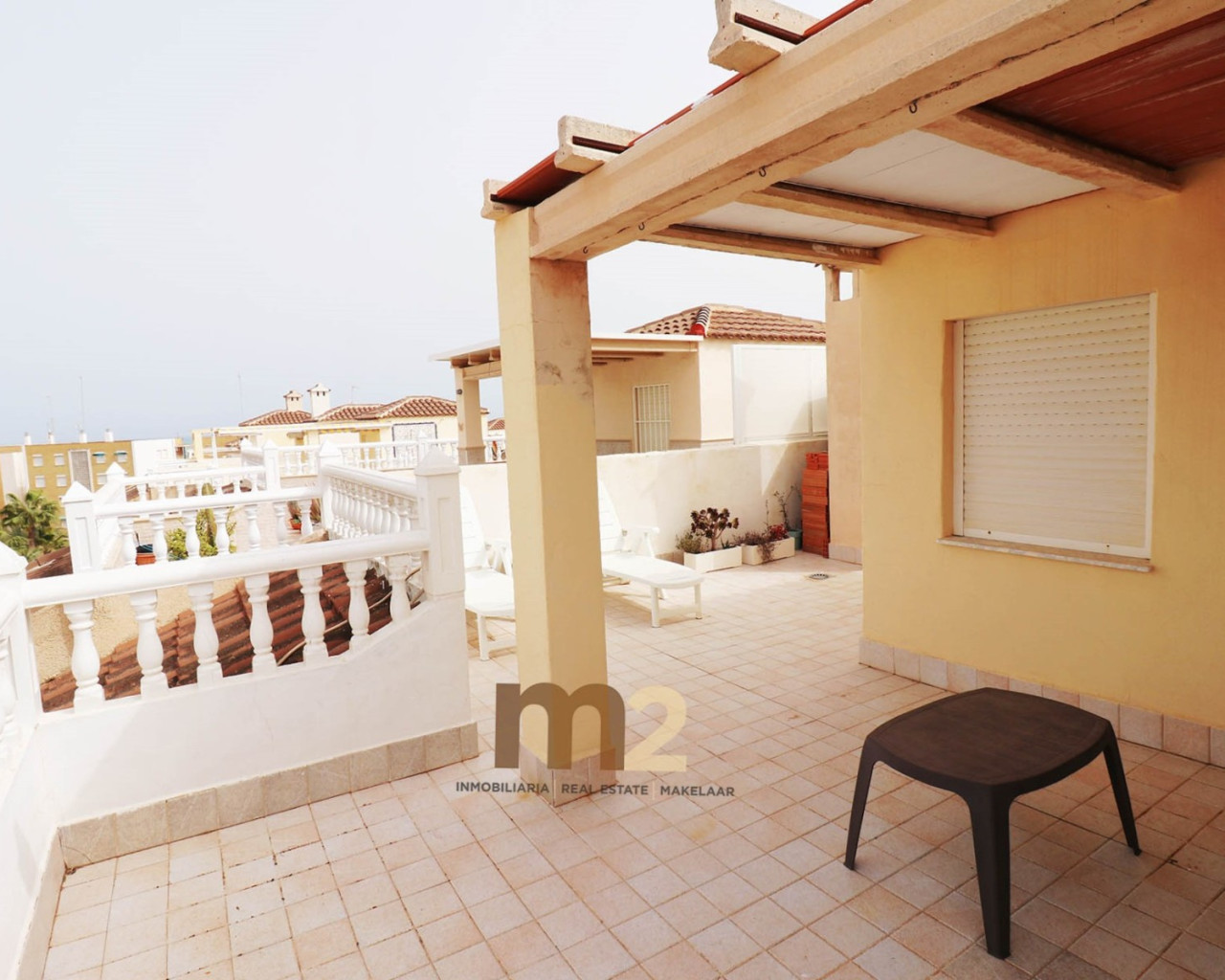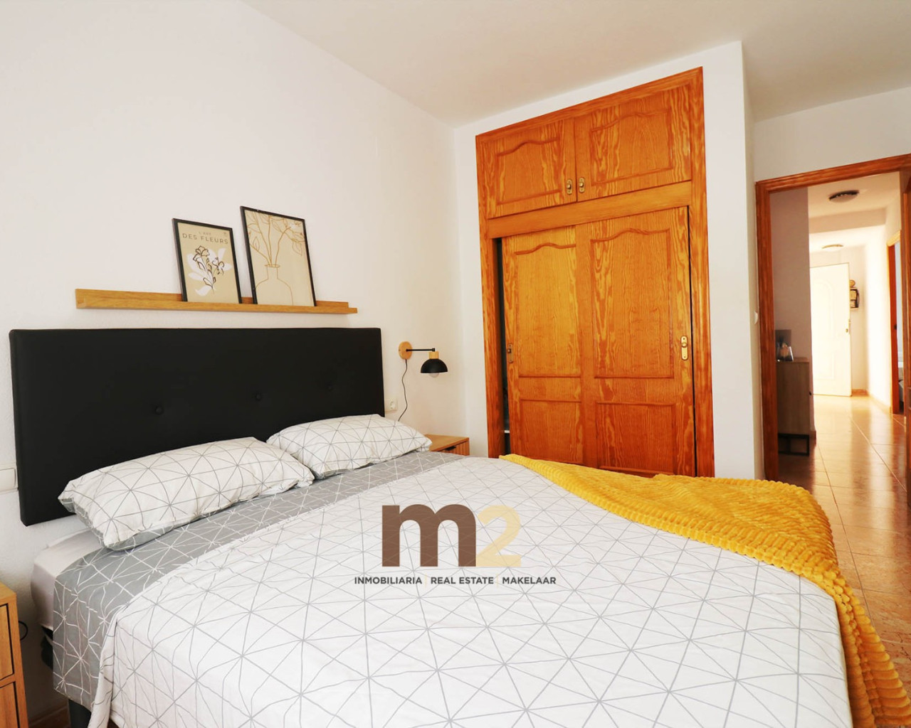 La vivienda se encuentra en segunda planta (sin ascensor) y está distribuida de forma muy cómoda. Dispone de dos amplios dormitorios, un baño completo, cocina independiente totalmente equipada y un luminoso salón-comedor con salida a una gran terraza, perfecta para disfrutar del buen clima durante todo el año. Disponde además de un amplio y soleado solarium
