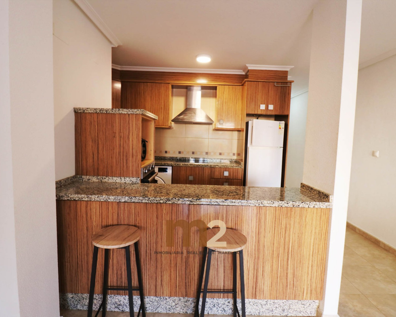 La vivienda cuenta con tres dormitorios, dos baños completos, cocina americana integrada, un amplio y luminoso salón comedor, y una generosa terraza ideal para disfrutar del aire libre.